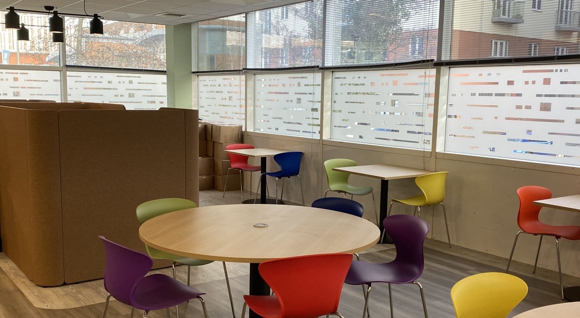 SunShield glazing manifestations come in a wide range of colours and finishes. Creative designs and decorative images can also provide a cost effective way to improve the look of your workplace.